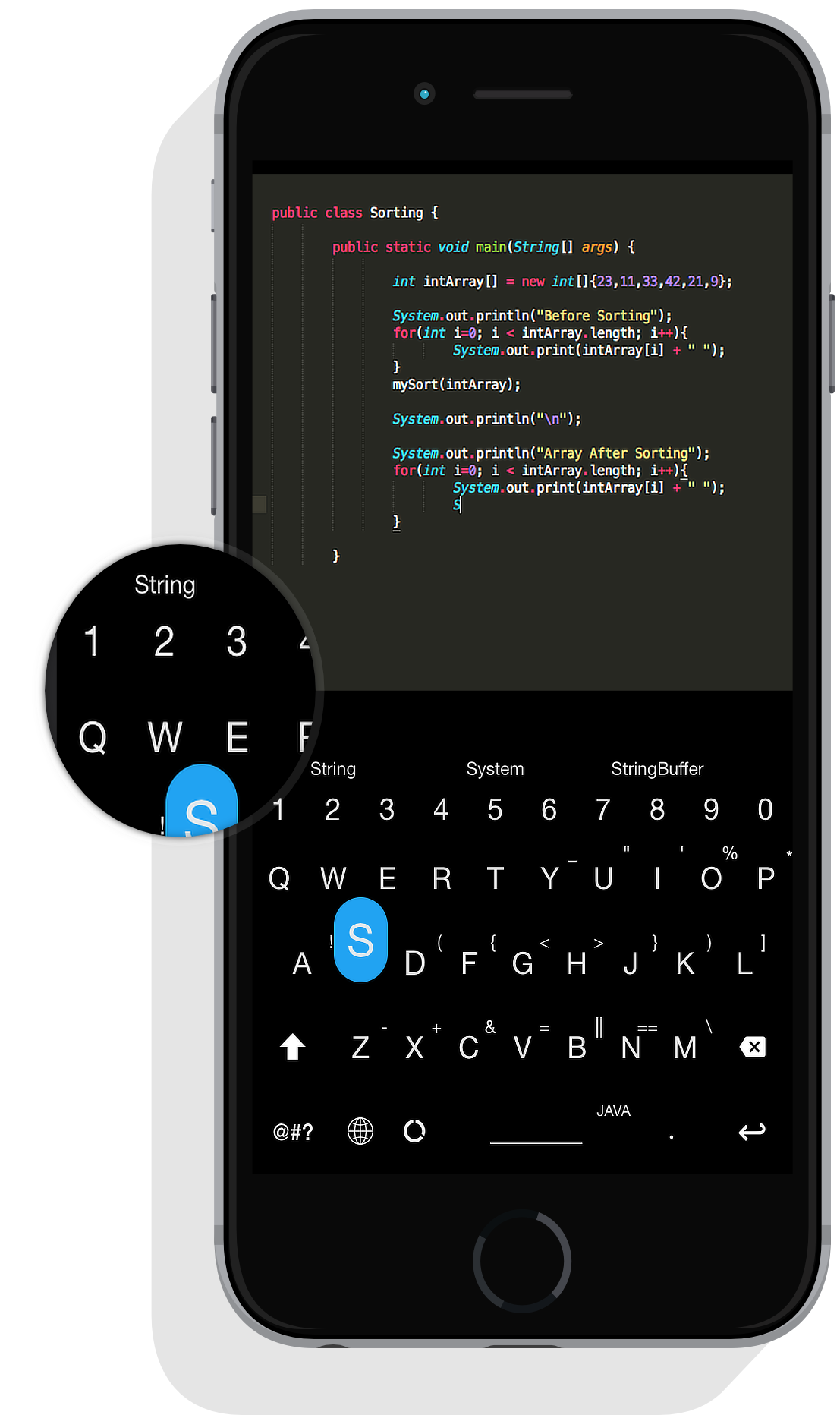 No more going through menus, screens to type "{} "" (), simply swipe up to access the symbol on the key.